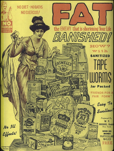 Desde los huevos de Taenia solium (dejar vivir una linda solitaria en el intestino fue un tratamiento real) hasta la recientemente retirada sibutramina, pasando por las anfetaminas, se han intentado numerosas alternativas. Hoy sólo nos queda el orlistat -comercializado como Xenical o Allí- que ayuda moderadamente a perder peso pero que causa fuga fecal (y lamentables anécdotas involuntarias) a sus usuarios cuando comen alimentos ricos en grasa.