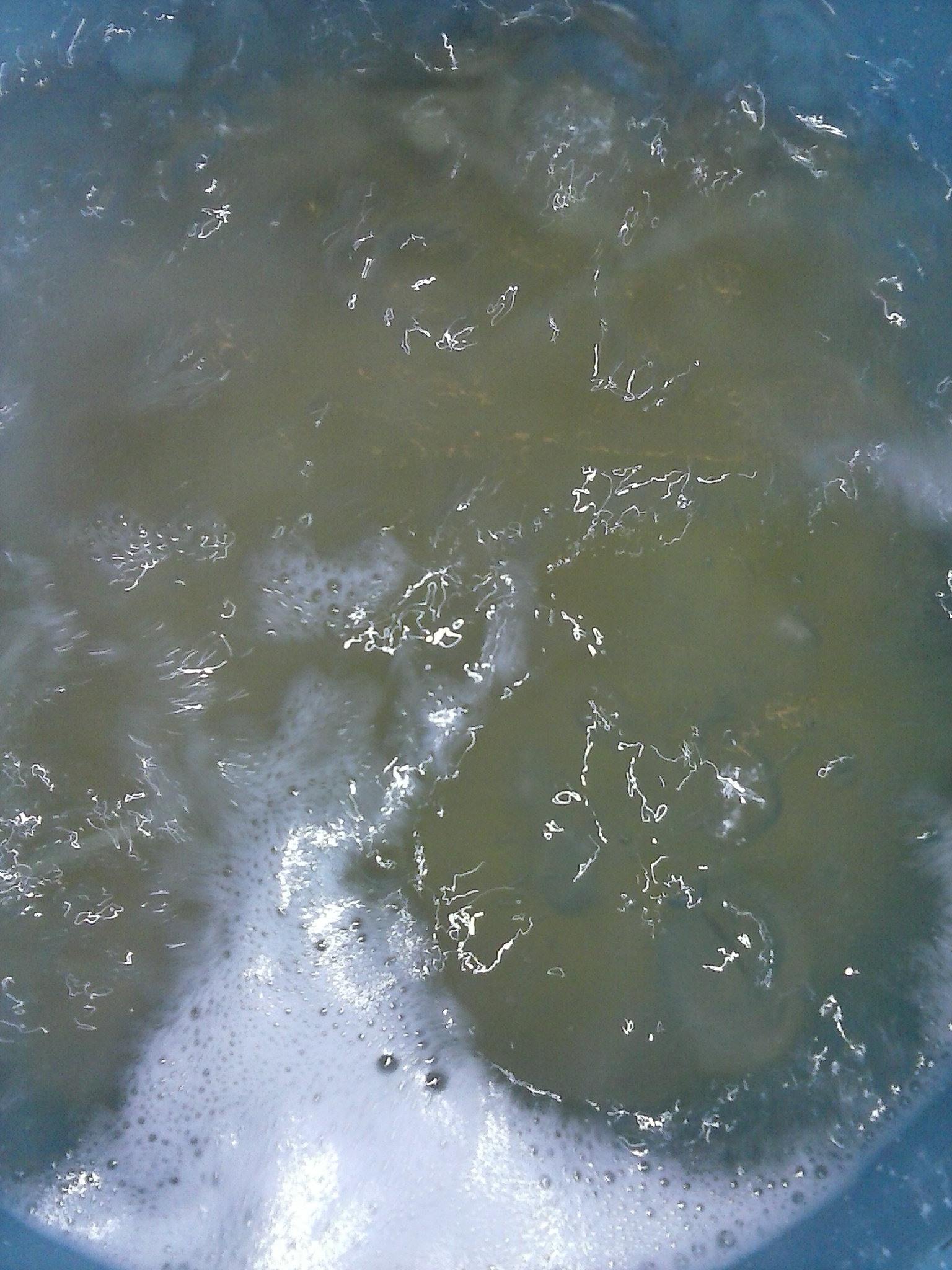 Ya líquida, se pica el ajo y se sofríe igual que en la versión rápida, luego se vierte el caldo de tomate que acabamos de moler para que se empiece a cocer. Aquí, sin embargo, tenemos que añadir sal al gusto y antes de añadir el resto de los componentes, debe hervir al menos unos 10 minutos para que se cocine el tomate. Ya en proceso de cocción, se le añaden los demás ingredientes, se vuelve a revisar de sal y al final se le añaden el orégano y la albahaca. También se le puede añadir vino tinto si se tiene a la mano.