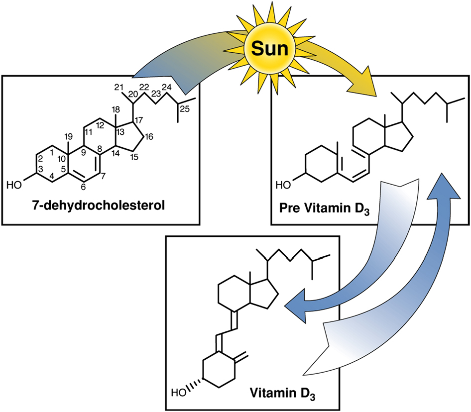 Entre 1932 y 1937 se aisló la vitamina D, se descubrió su naturaleza y se dilucidó la forma en el que el cuerpo la sintetiza a partir de colesterol. Explicado de forma simple, el colesterol que circula en la sangre al pasar por la piel expuesta a luz UV sufre una transformación a previtamina D que después sufre modificaciones bioquímicas en el cuerpo a Vitamina D. Después requerirá de dos pasos en el hígado y en el riñón para convertirse en la forma activa 1-25 hidroxi Vitamina D.